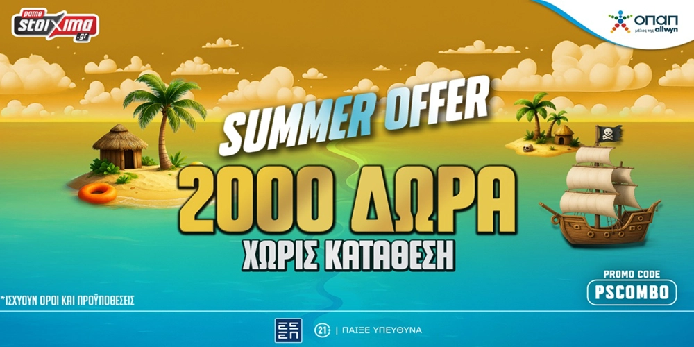 Η καλοκαιρινή δωρεάν προσφορά* του Pamestoixima.gr προσφέρει μοναδικές στιγμές διασκέδασης σε αθλητικές διοργανώσεις και live casino.